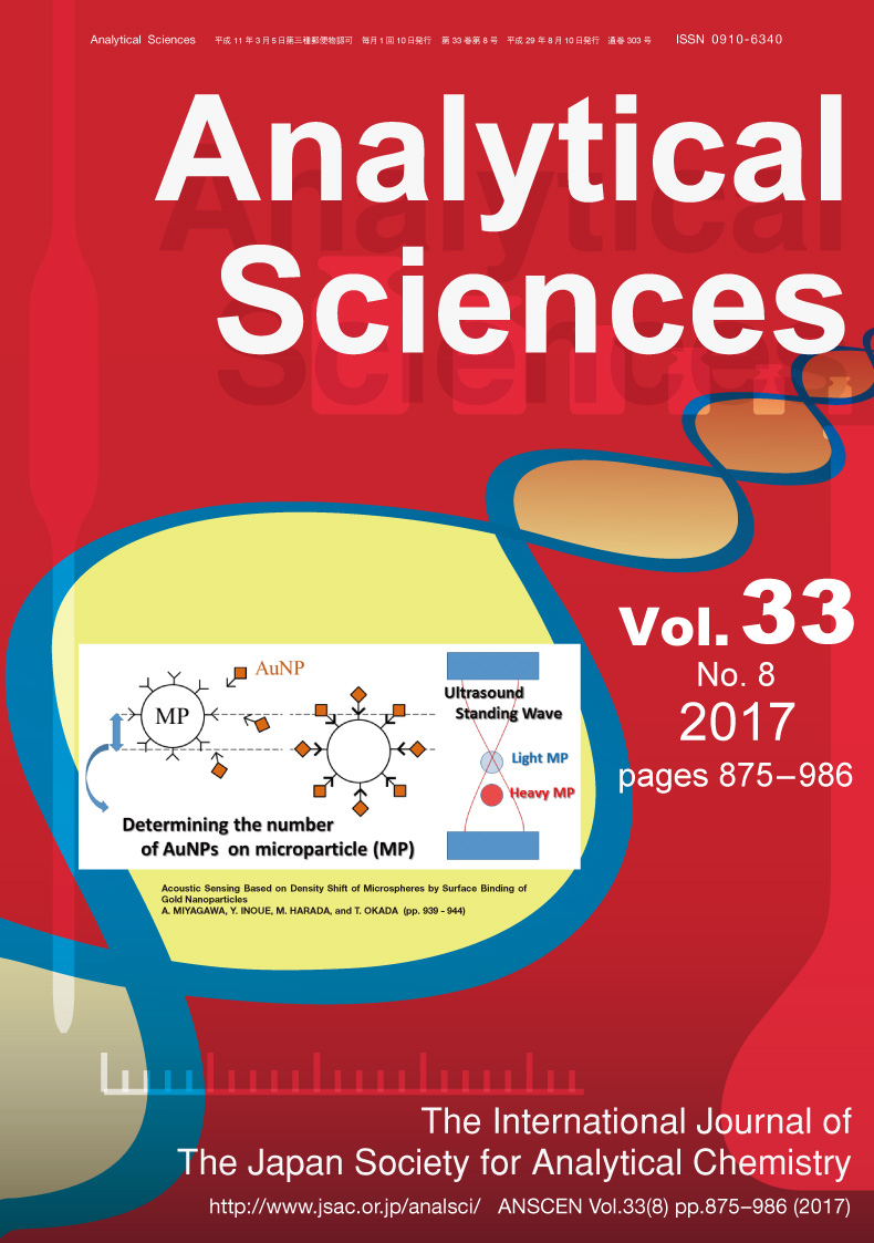 Cover illustration of this month"Acoustic Sensing Based on Density Shift of Microspheres by Surface Binding of Gold Nanoparticles" by Akihisa MIYAGAWA, Yoshinori INOUE, Makoto HARADA, and Tetsuo OKADA (p.939). See larger image