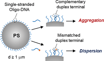 Keywords: DNA, microparticles, dispersion behavior, terminal-sequence specificity, non-crosslinking aggregation